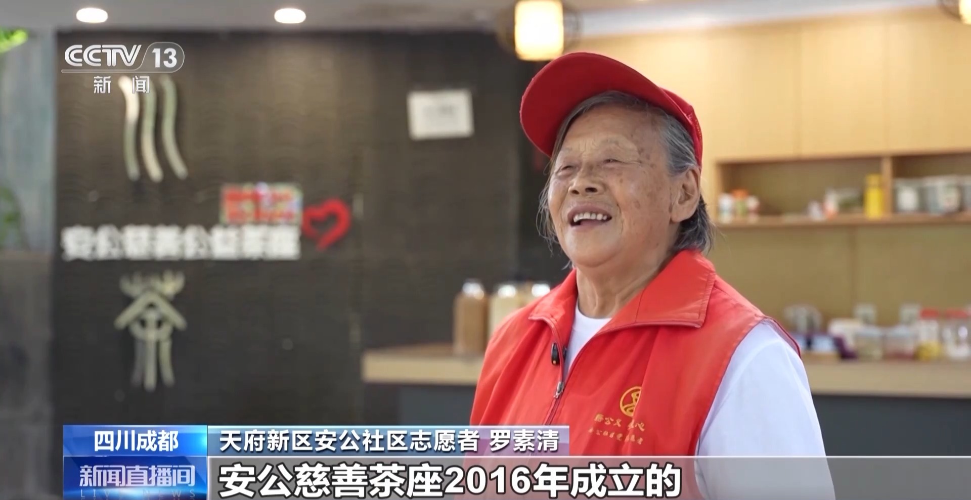 天府新区安公社区志愿者 罗素清:安公慈善茶座2016年成立,我就一直在这负责,老百姓来喝茶最高是15块钱一杯,这些都拿去搞慈善。