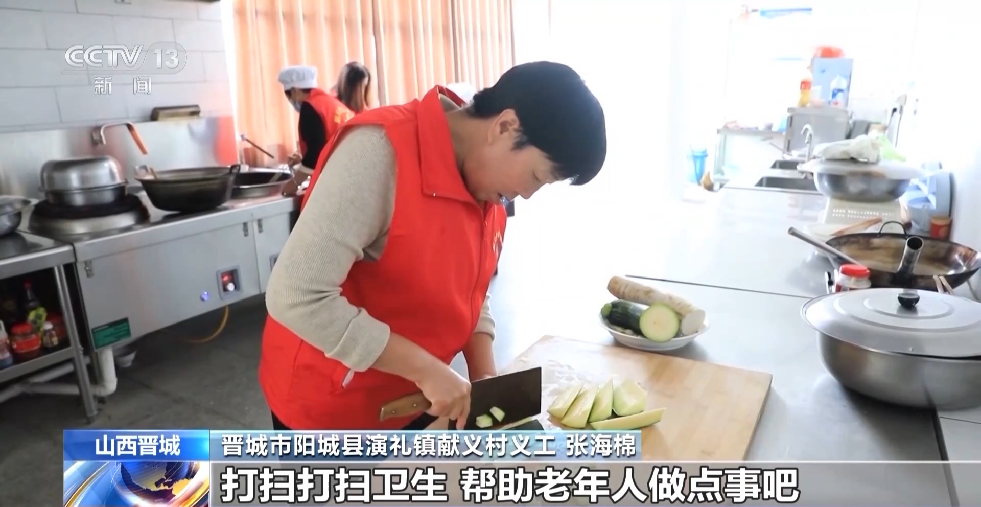 晋城市阳城县演礼镇献义村义工 张海棉:来了就是帮帮厨,做做饭,打扫打扫卫生,帮助老年人做点事。