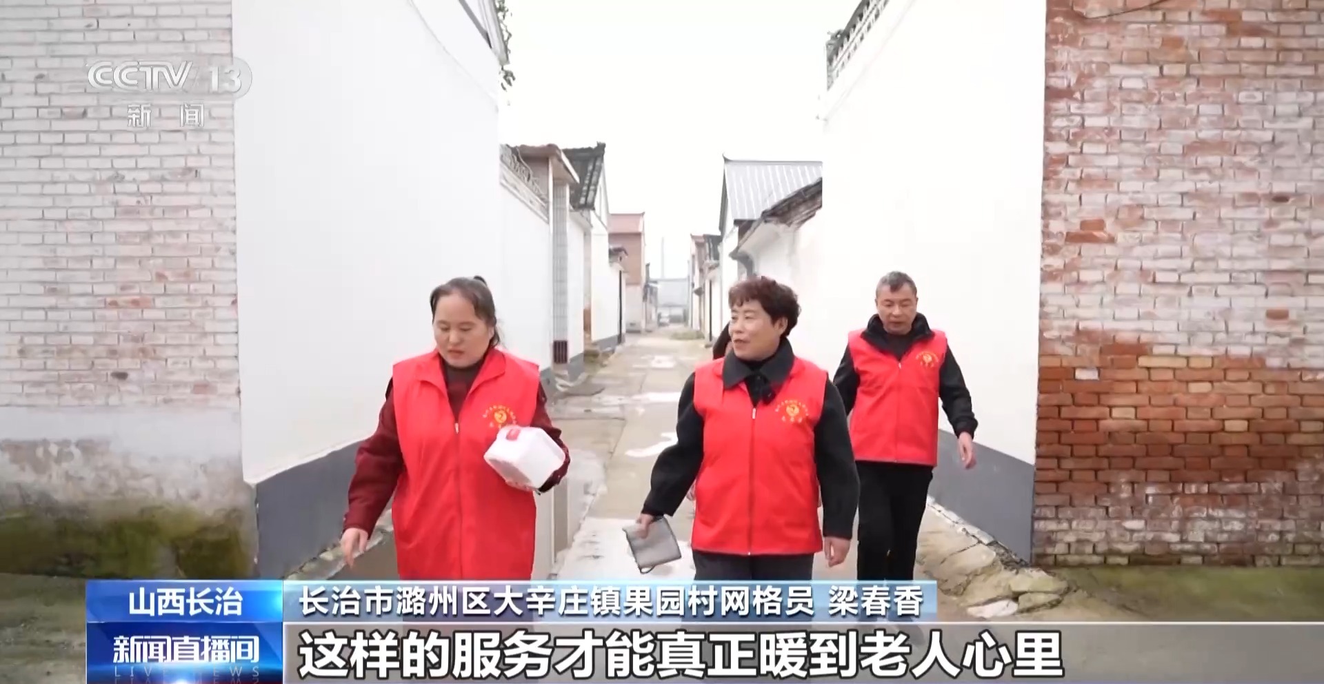 长治市潞州区大辛庄镇果园村网格员 梁春香:平时多跟老人们唠唠家常,不光听他们说需要啥,还得琢磨他们没说出口的需求。其实就是多花点时间、多替他们想一步,这样的服务才能真的暖到老人心里。