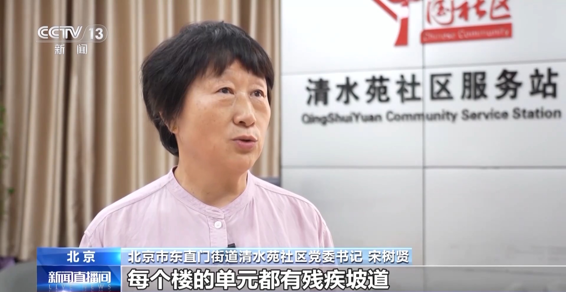 北京市东直门街道清水苑社区党委书记 宋树贤:每个楼的单元都有残疾坡道,我们所有的服务项目,包括老年餐桌、社区服务站、超市、银行,都是做了残疾坡道。
